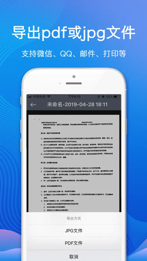 3,直接导出扫描件为JPG或PDF,无水印不限次数。