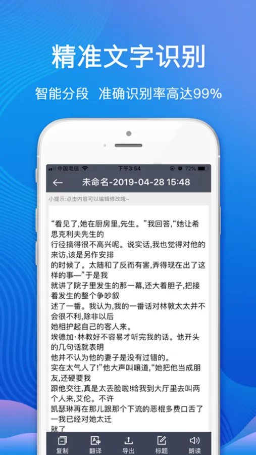 1,准确识别率高达99%!智能分段(设置页中打开启用)