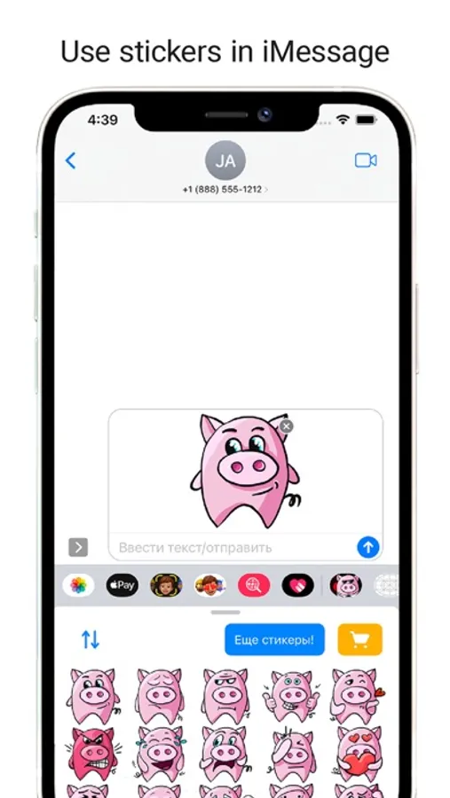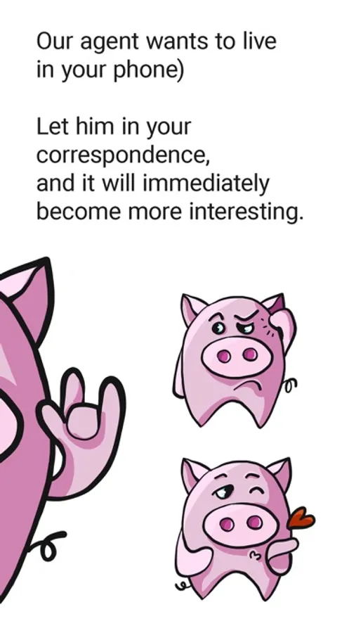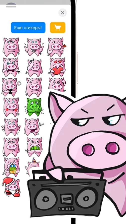 A cheerful pig will help you express your emotions, making your correspondence with friends more diverse.