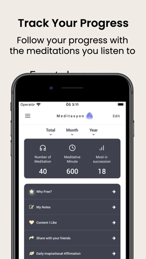 You can track the meditations you have completed daily, monthly, or yearly from your application account.