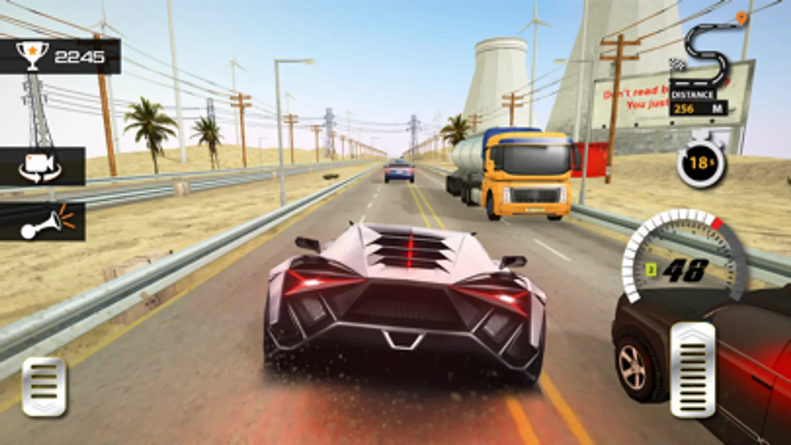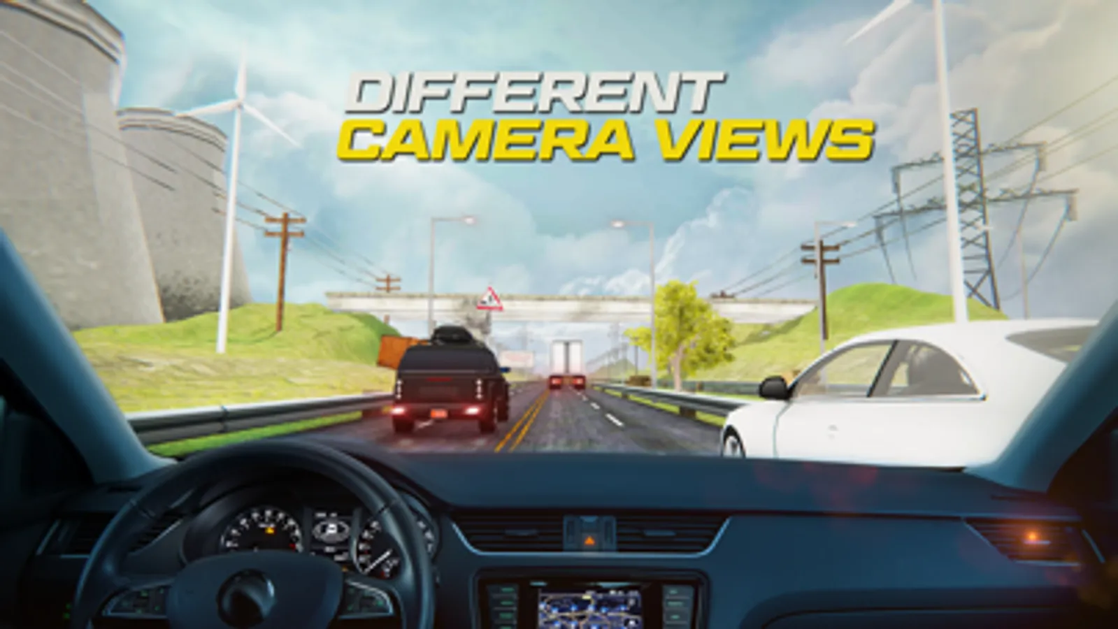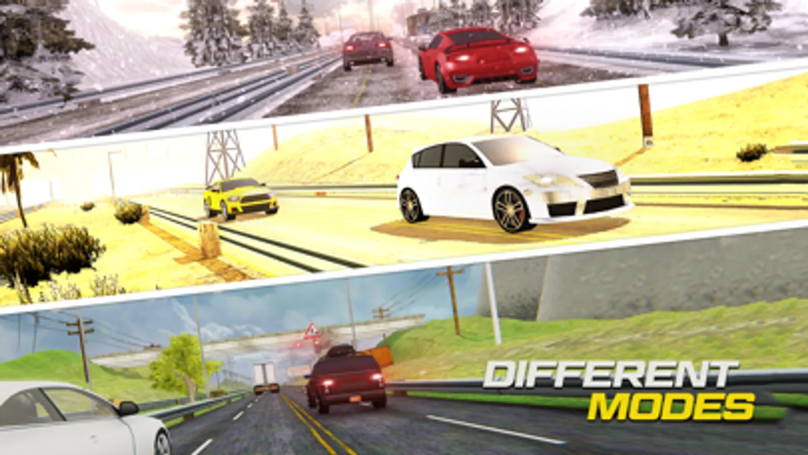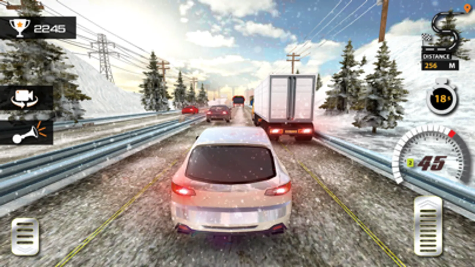 Among all traffic car driving games this game is unique with three different environments open from level one. Traffic Driving in Snow, Desert and Highway are the options provided. Turbo Traffic Racing is fun with Different Camera angles.
