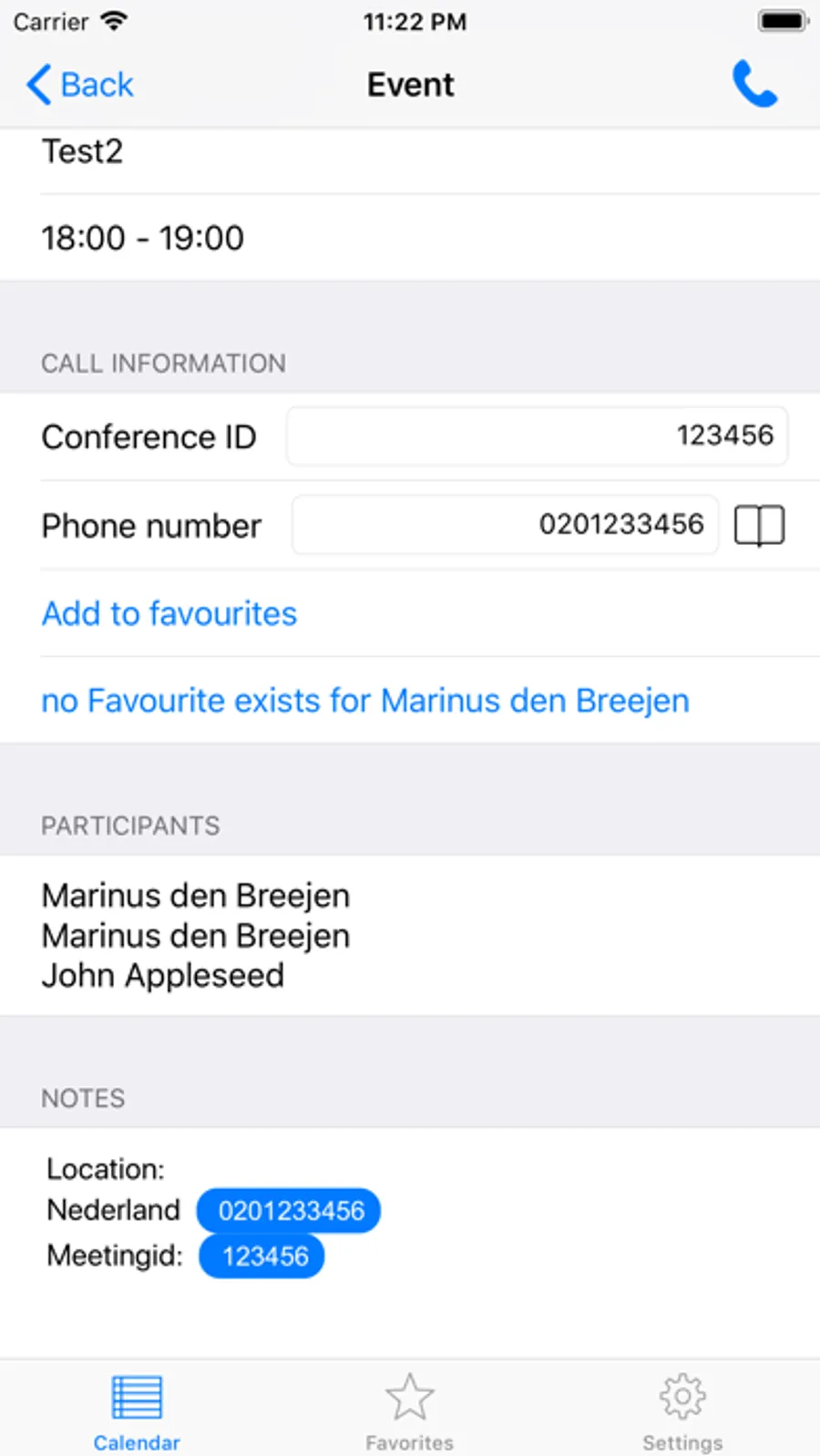 Dial conference call numbers quickly. The app reads the title, location and the notes area, and looks for keywords (which can be changed in settings) to determine if a number is a phone number of conference call id. This way, a conference call can be stared with one tap.