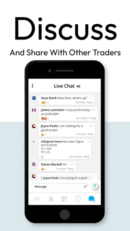 Furthermore, with our unique community chat feature, you will stay connected to the Forex Market and to the Pro Traders from all around the World!