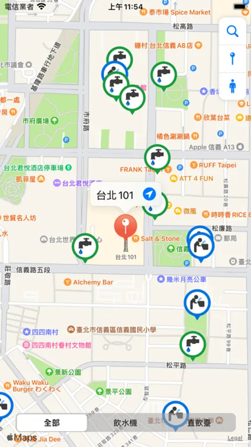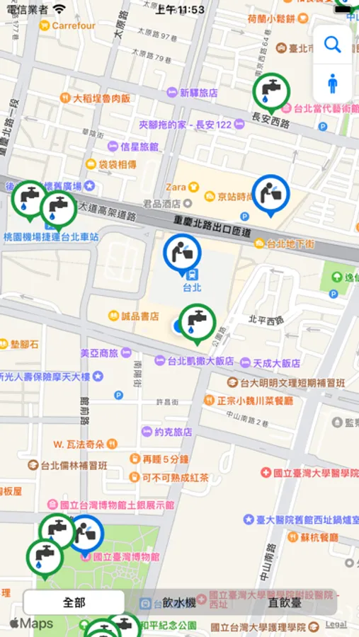 1. 可查看當前位置周邊的公共飲水機與自來水直飲臺(需要開啟定位功能)。
