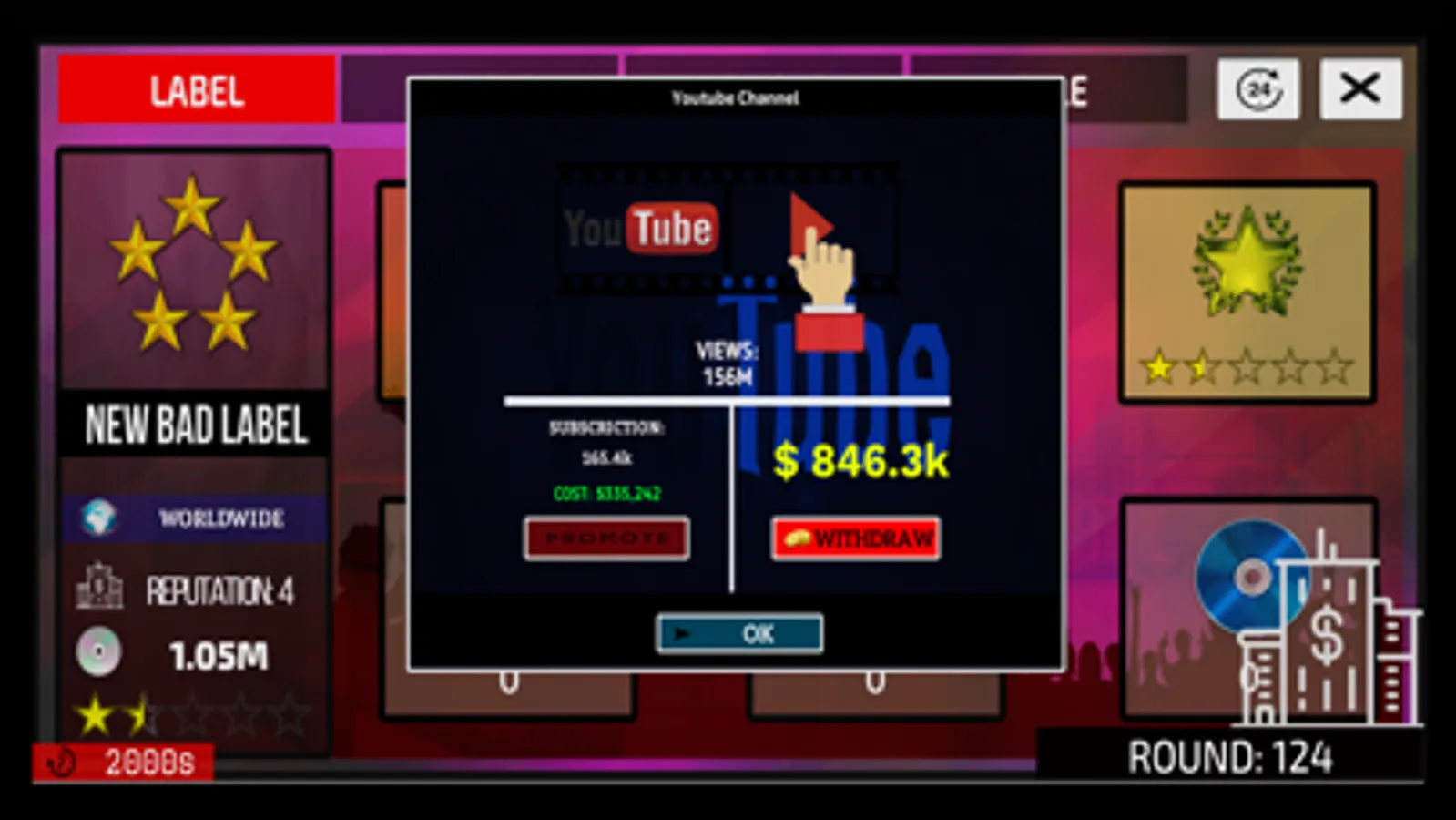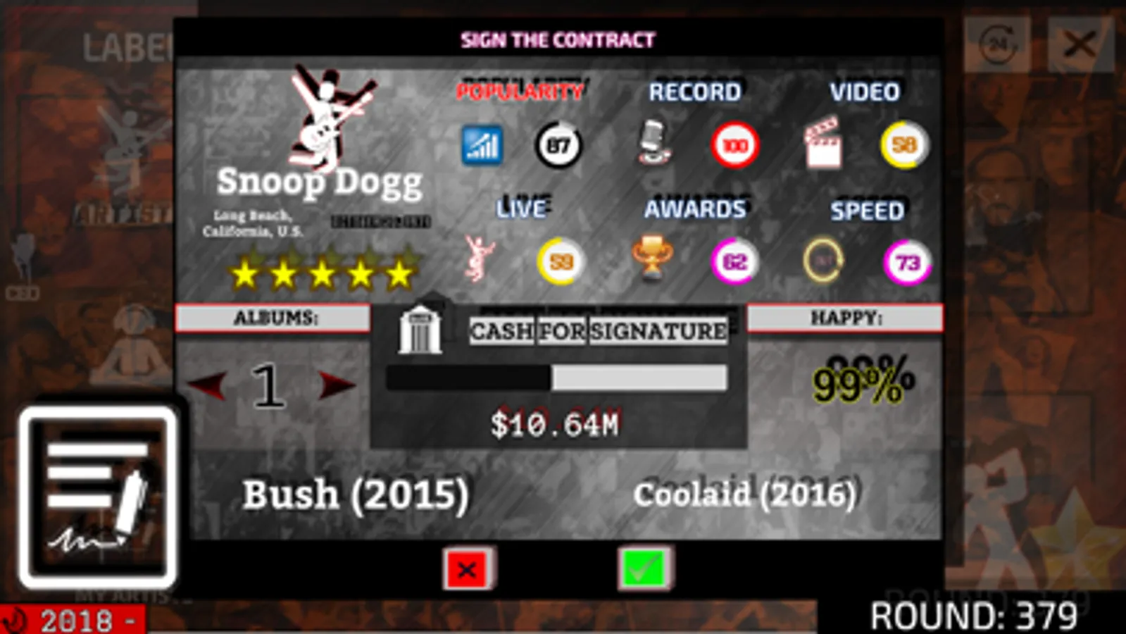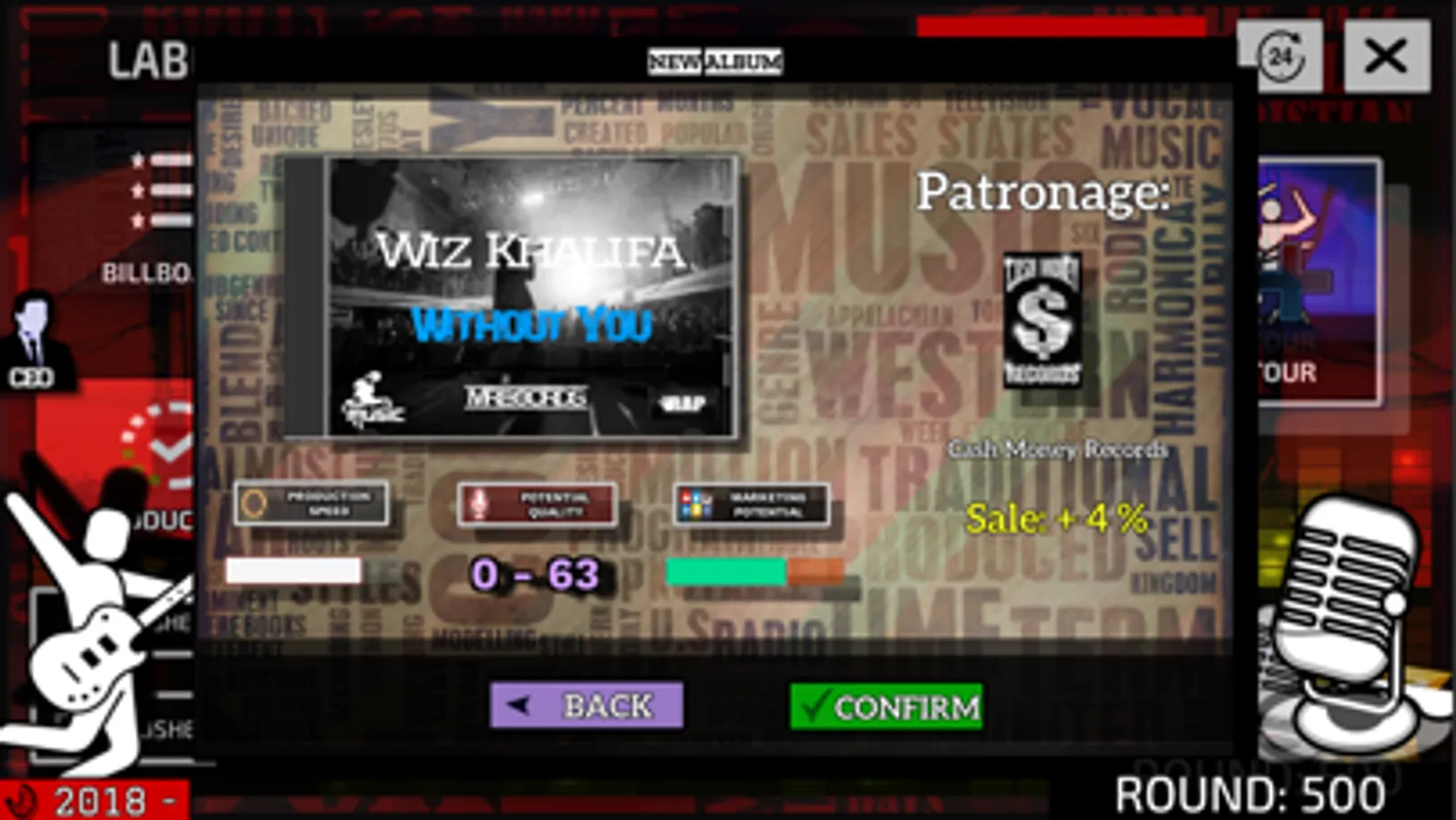 MusicLabelManager is a music industry simulator that allows players to create and run their own record label, giving them the opportunity to manage the financial state of their company as well as aspects of the artists signed to their label. Players take the role of CEO and try to make their mark on the music industry. The game puts you in the shoes of an independent record label, do not waste this opportunity!