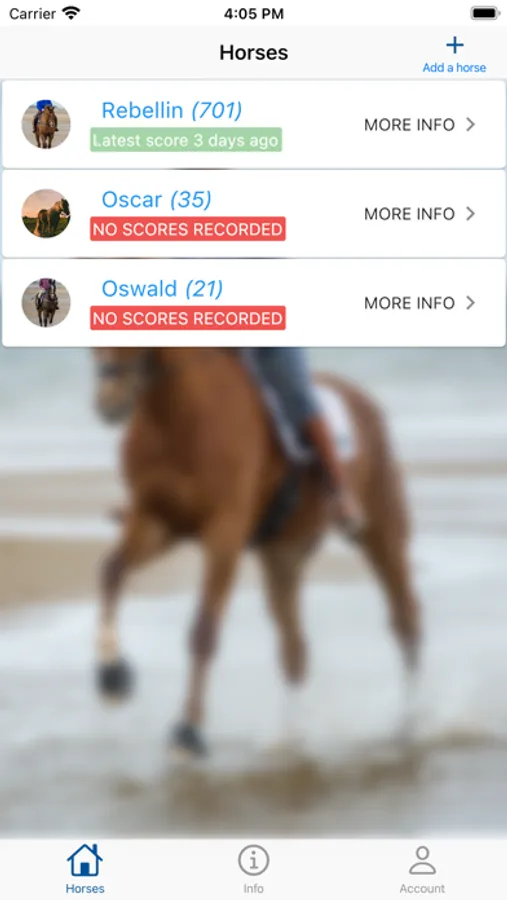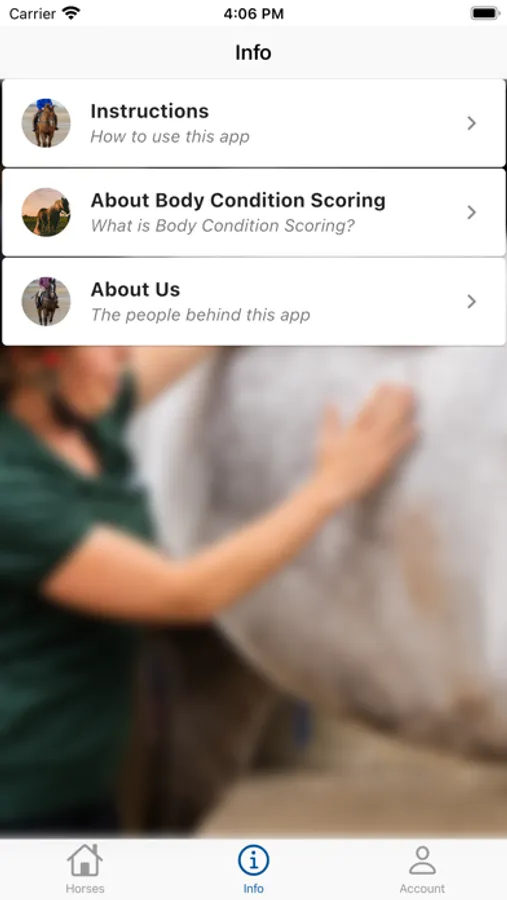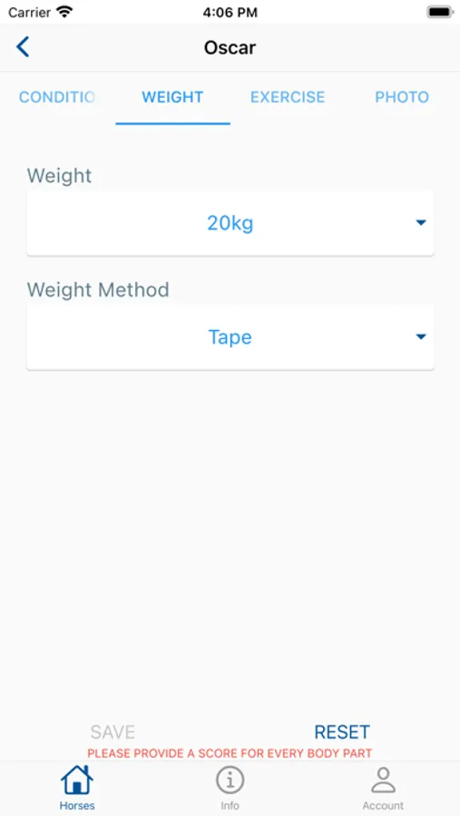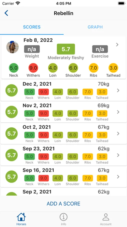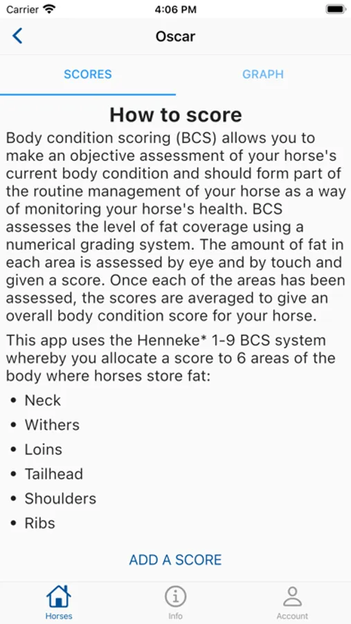 The Equine Body Condition Scoring app allows you to assess the fat coverage and weight across different body parts of your horse or pony and gives scores that provide you with an overall body condition score. You can then graph and share the condition records.