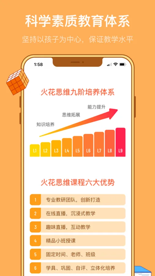 火花通过小班教学关注到每个孩子,通过”动态分层“让孩子保持“够一够就能学会”的状态;通过形象化教法,激发孩子兴趣,降低孩子对新知的认知门槛,提升孩子的理解能力;通过四步“启发式”教学法,引导孩子独立思考,探索过程、理解本源,实现会思考,会迁移,最终学会独立解决问题,建立终身受益的自信心。