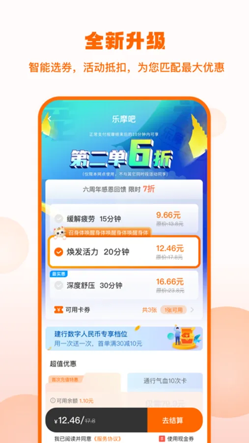 科技赋能,扫码按摩,15分钟快速缓解疲劳。