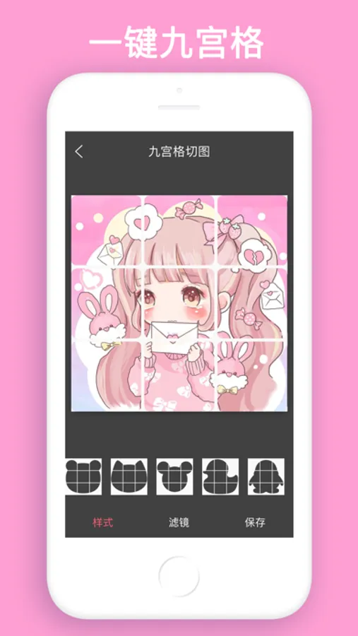 # 一键保存到相册,按顺序选择图片即可得到九宫格特效。