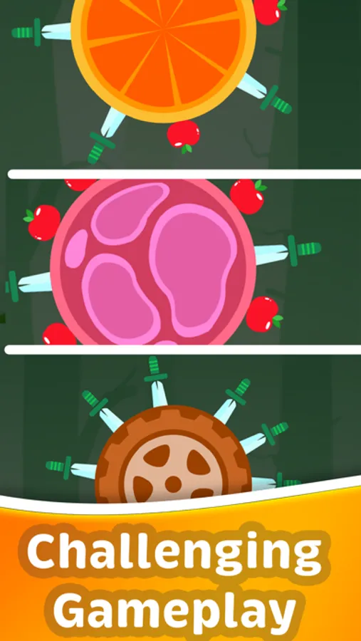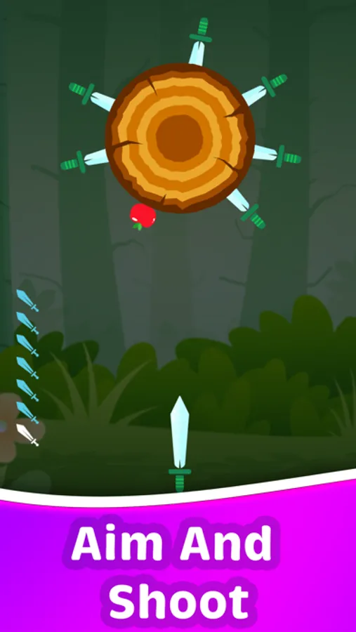 Throw the knives into the logs to break them. Slash the apples and unlock new knives. Each 5th stage is defended by a boss - beat them to get exclusive knives!