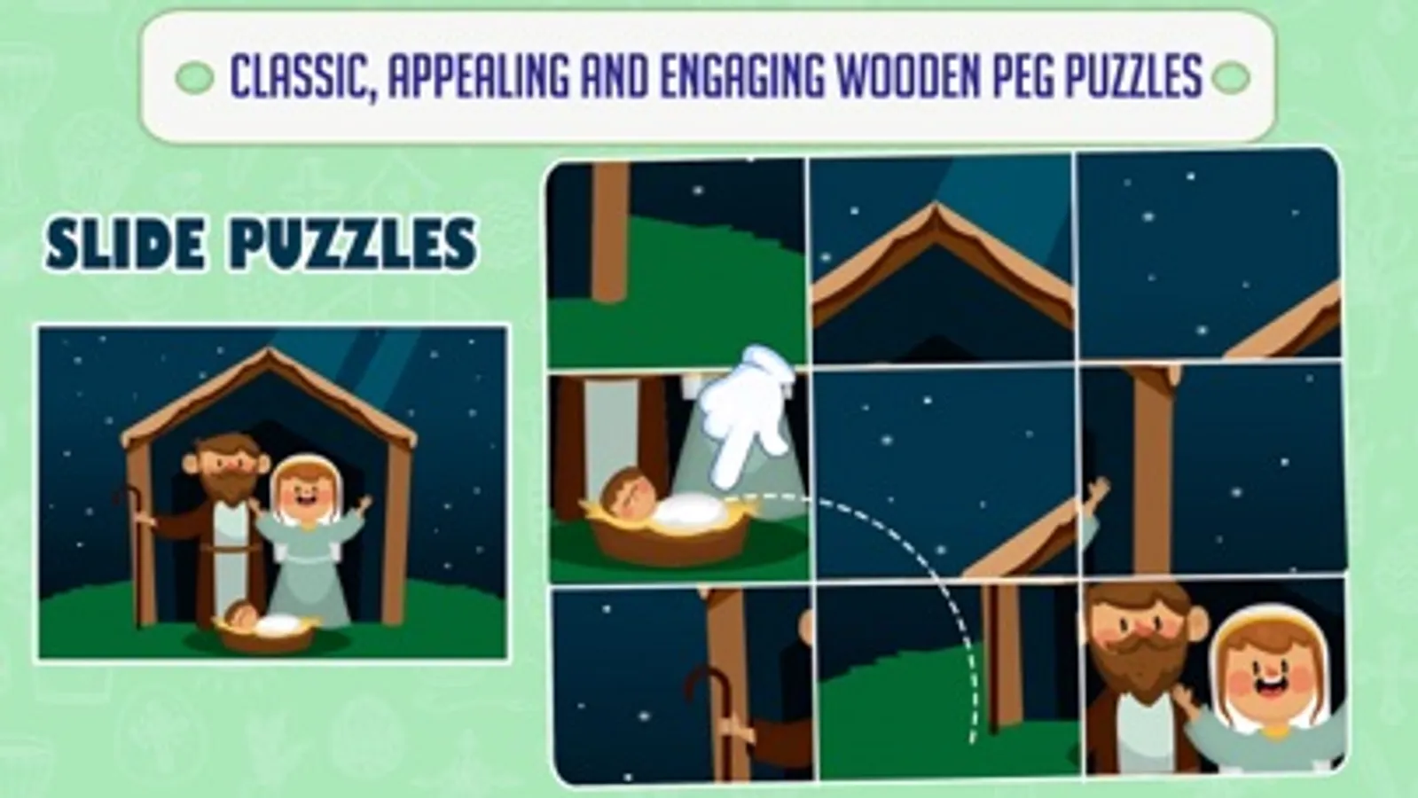 Puzzles are a great hands on activity for preschool aged children. This game consists of several puzzle levels. Pick out the puzzle pieces and place on the main bible story image. The app will help children of all ages to discover God's love and interact with the Bible in a way that helps them connect to God. Let your kids try out their logic and skills.