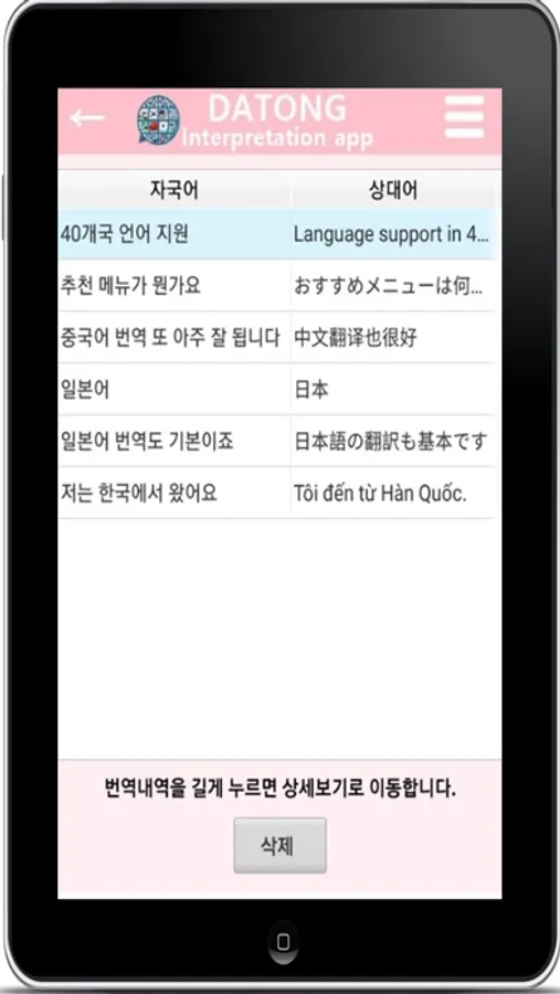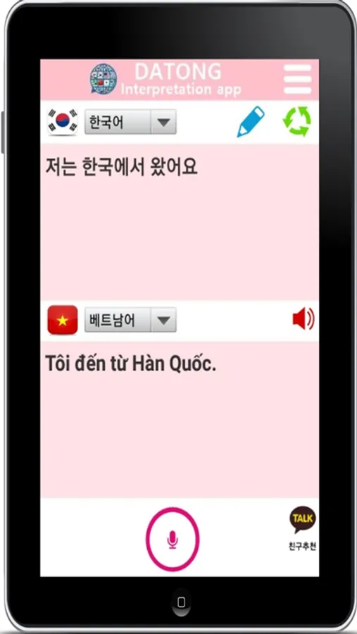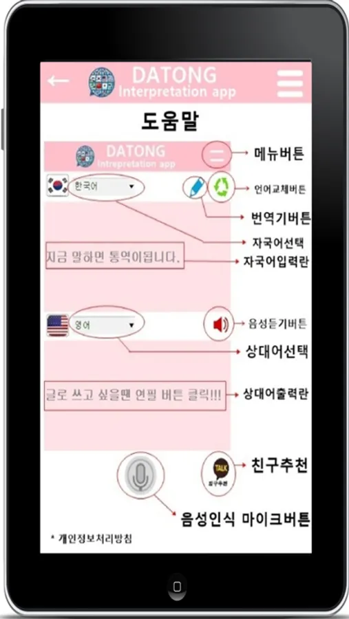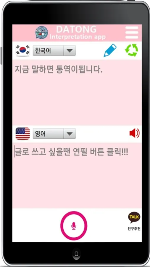 통역앱 다통은 한국어로 말하면 전세계 주요 국가의 언어로 실시간 인공지능(AI) 통역을 해주는 실시간 다국어 통역기, 번역기앱