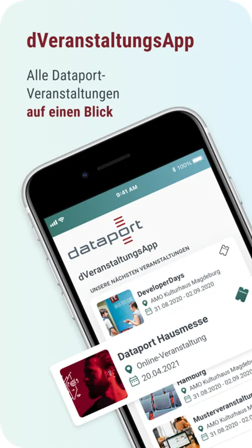 Mit der dVeranstaltungsApp haben Sie alle Informationen zu Dataport-Veranstaltungen auf einen Blick und immer zur Hand. So planen Sie bequem und einfach Ihren Besuch auf Dataport-Veranstaltungen, wie zum Beispiel der Hausmesse.