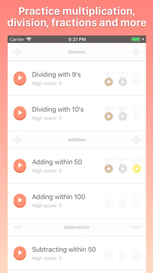 Math Ace helps players not only catch up, but get ahead of their peers, all while having fun. Medals and levels motivate players to learn and memorize math, rather than rely on counting. Dynamic challenges adapt to player speed and mistakes to maximize learning and minimize effort. Can you master all of the challenges to become a level 25 Math Ace?