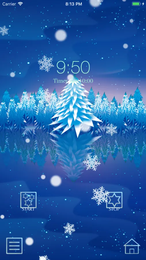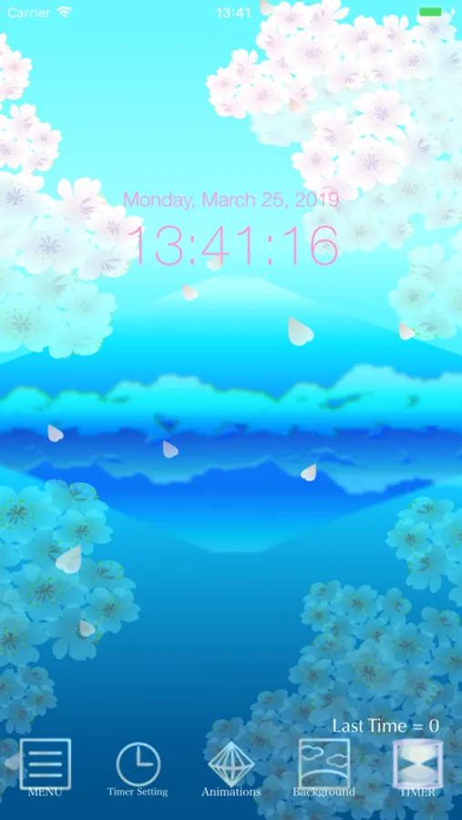 The images on the background images "Lake shore village ", "Cherry blossom view", "Time Variation", and "Crystal Forest" change depending on the time at that time.