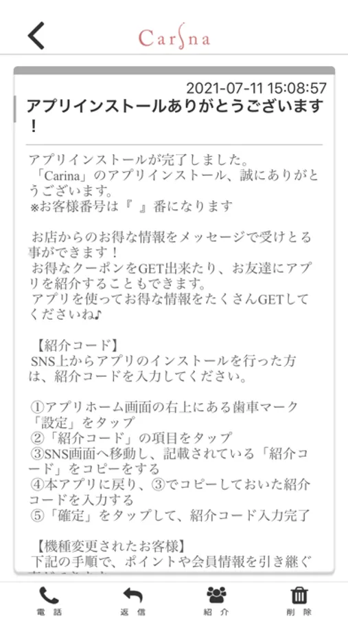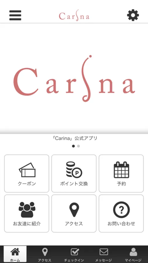 このアプリでは、Carinaの最新情報の受け取りや便利な機能を使う事ができます。