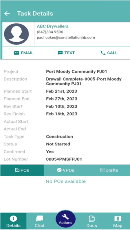• View task details including notes, photos, related purchase orders and a Google map referencing the lot location