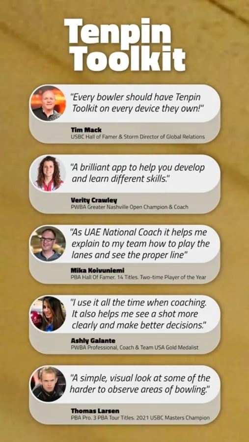"Every bowler should have Tenpin Toolkit on every device they own. It’s an incredible information source and provides so many things to help you learn, get better and challenge yourself."