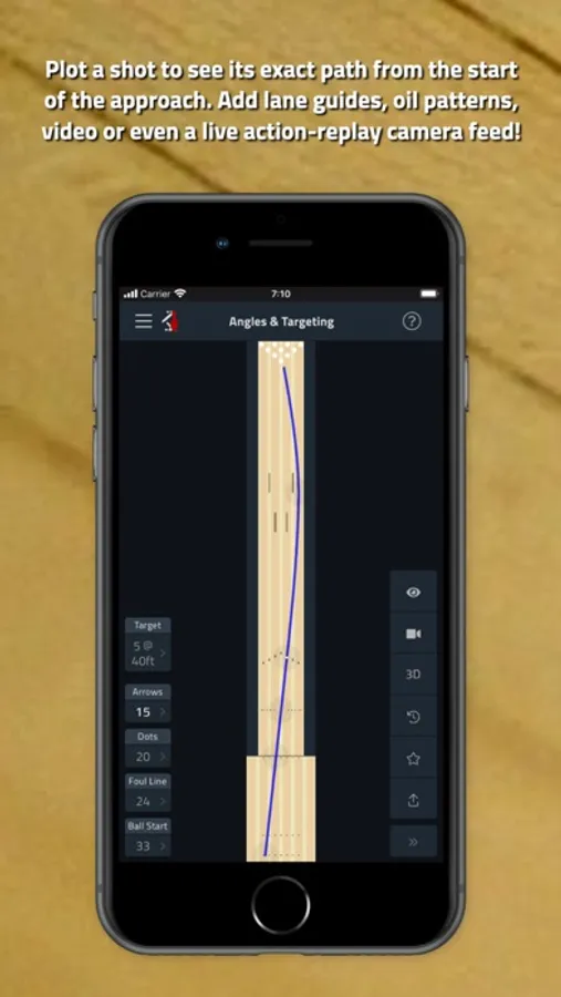 Instant access to details & diagrams of hundreds of oil patterns, or enter your own custom patterns. Load any pattern into Angles & Targeting to plot your shot directly over it and plan how you'll attack the lanes.