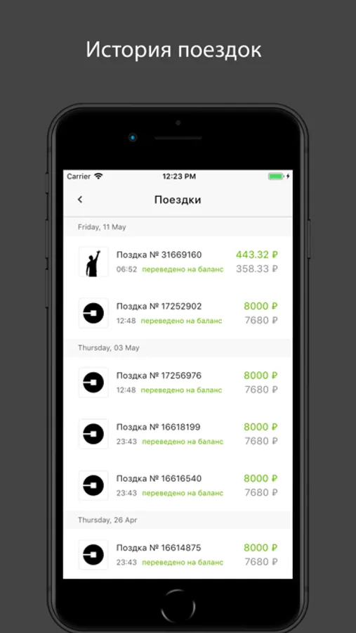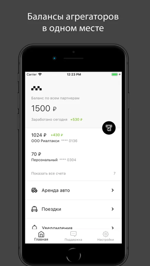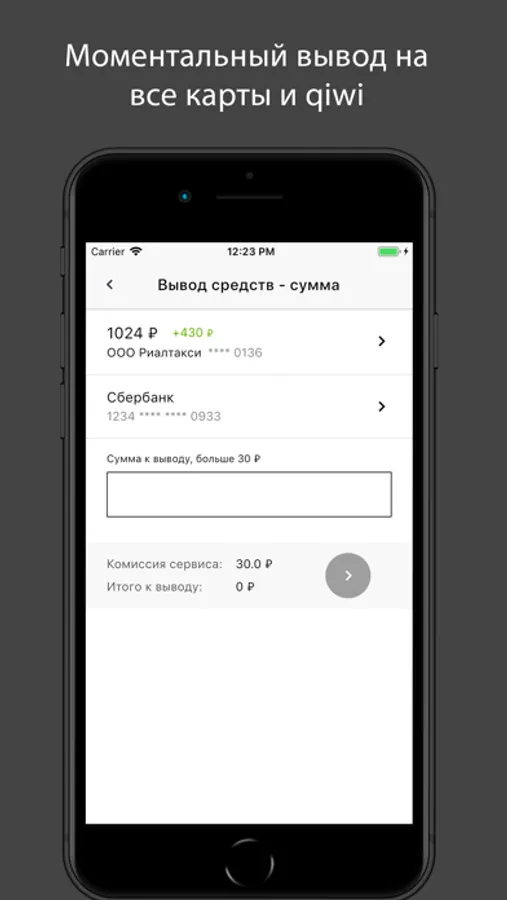 Приложение позволяет водителям работающим в агрегаторах такси получать моментальные выплаты за поездки оплаченные безналичным расчетом и выводить себе на банковскую карту и киви кошелек