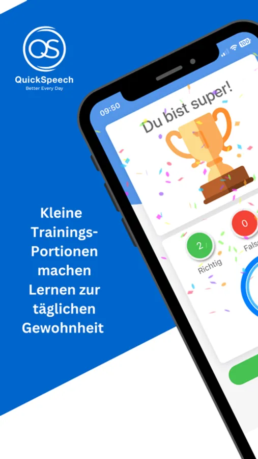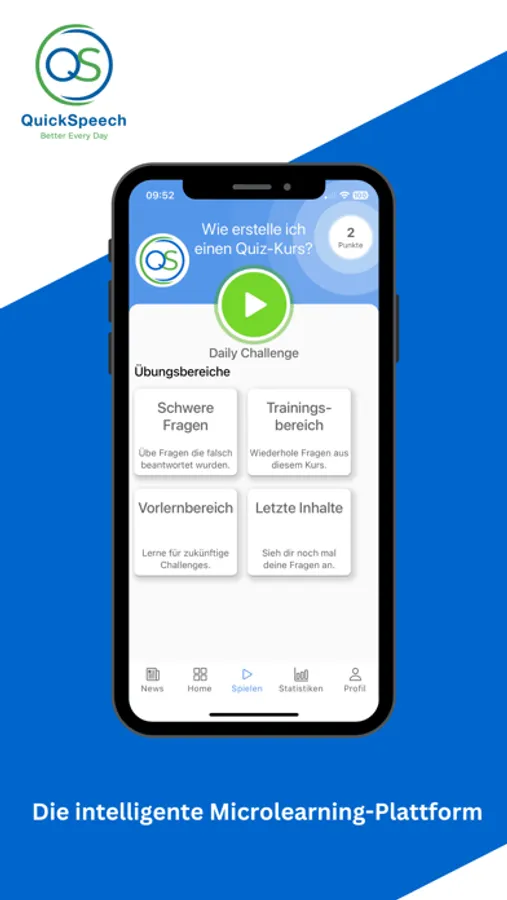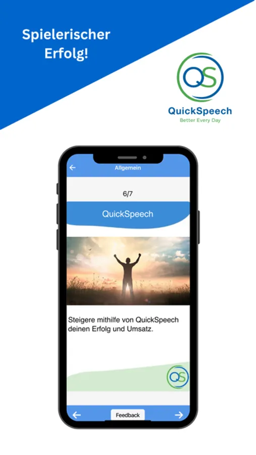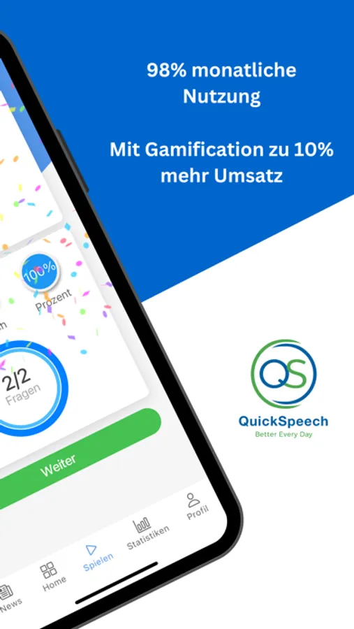 QuickSpeech ist die mobile Lern-App, die automatisch zum täglichen Lernen motiviert. Die App trainiert in kurzen Wissensportionen und aktiviert spielerisch die Nutzung. Mitarbeitende spielen in Gruppen, erreichen Punkte und können tolle Belohnungen erreichen.