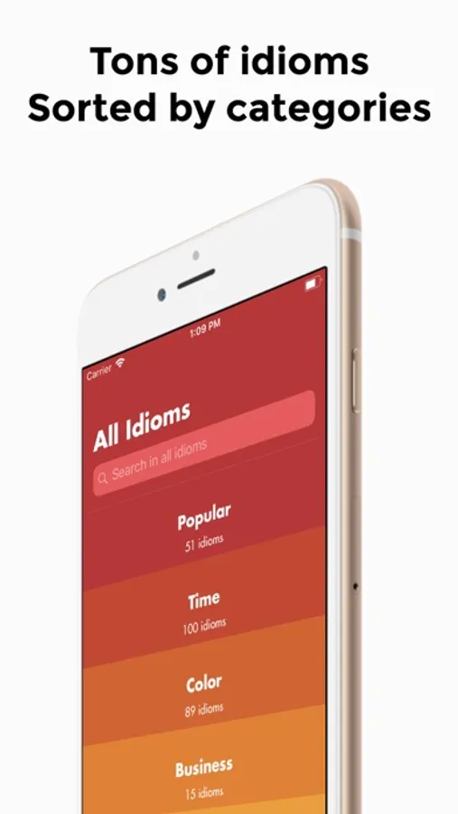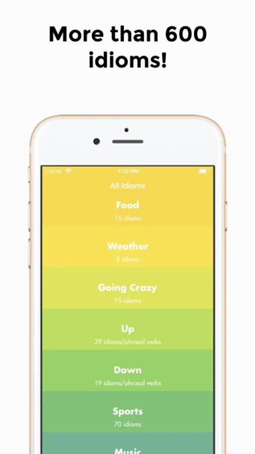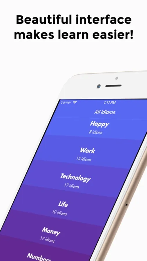 Sorted by categories with a really simple, beautiful and colorful interface that makes learning way more easy!