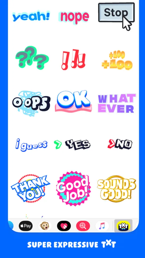 SUPERTXT is a pack of 60 stickers designed to be as loud, expressive, and fun as possible! Use these fun words to bring life and meaning into any conversation– whether it be romantic, a breakup, a breakdown, or when anything else breaks.