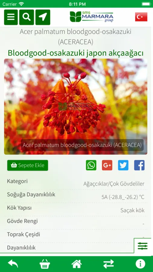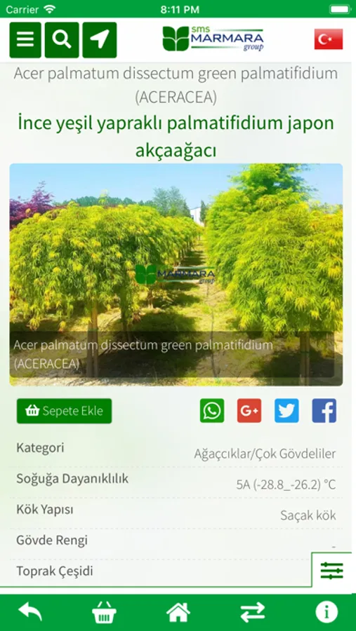 SMS Marmara Group fidanlıkları bünyesinde; Yapraklılar, İbreliler, Ağaçcıklar, Bonzai türleri, Çalı türleri, Otsu ve Saz türleri, Sarılıcı türler, Yarı bodur türler, Meyve çeşitleri ve Egzotik türlere ait ürünler bulunmaktadır.