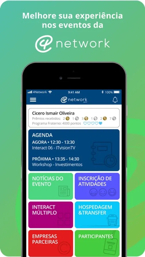 Nosso aplicativo foi criado pensando na comodidade e facilidade dos participantes e em interagir nos eventos da 4Network.