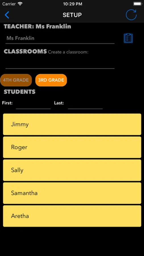 With one tap (and confirmation) of the reset button, the teacher can reset everyone's scores to 0 and start everybody off with a clean slate.