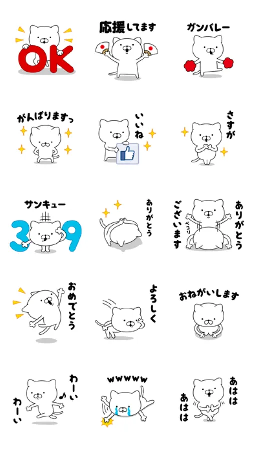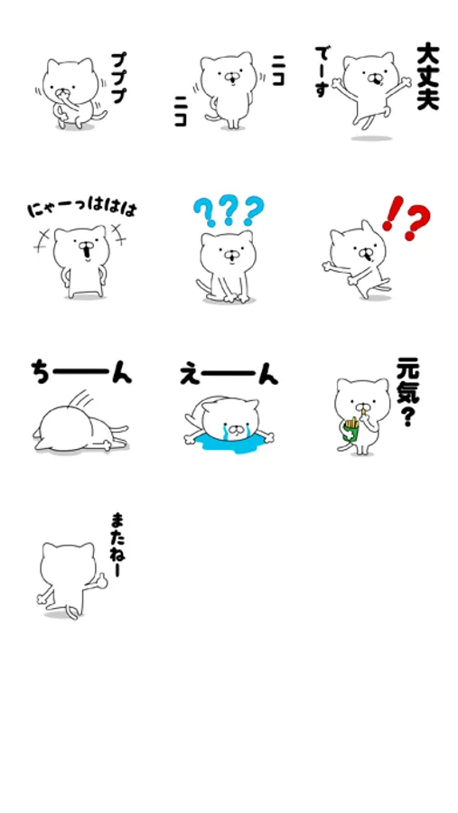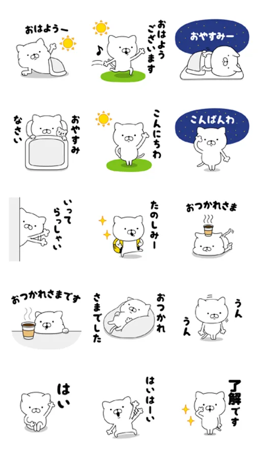 毎日使える日常会話。しろねこ(Aタイプ)のネコステッカーです。