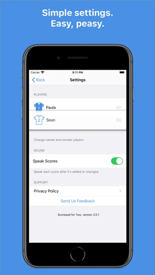 Scorepad for Two is the easiest way for two players to keep score while playing their favorite game.