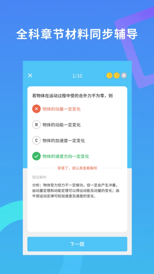 游戏化的闯关模式会来检验你的学习效率究竟如何哟~智能督促你的学习,让你的效率一高再高!
