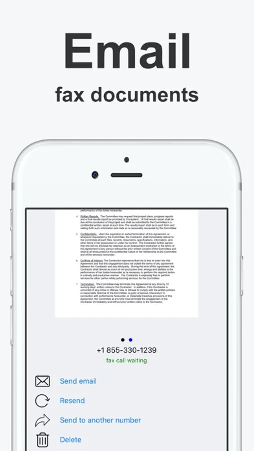 - Receive fax (two taps): pick a fax number you like, reserve the number and start to receive fax!