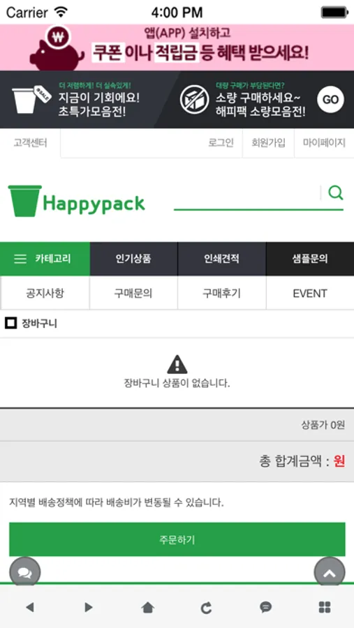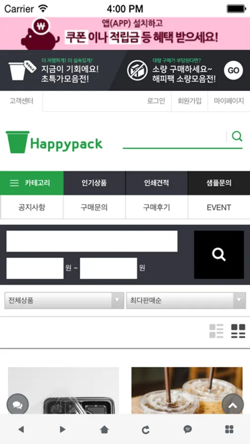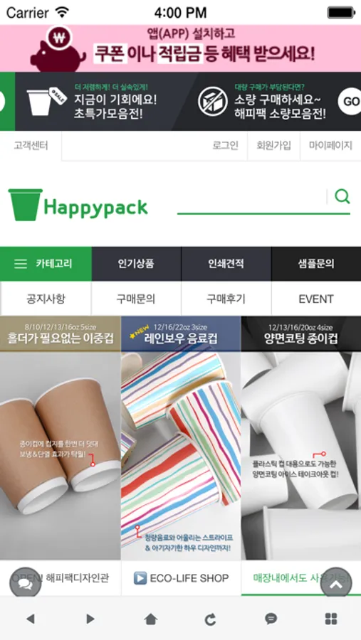 해피팩 - 종이컵 및 일회용 포장용기 전문 쇼핑몰 Screenshots