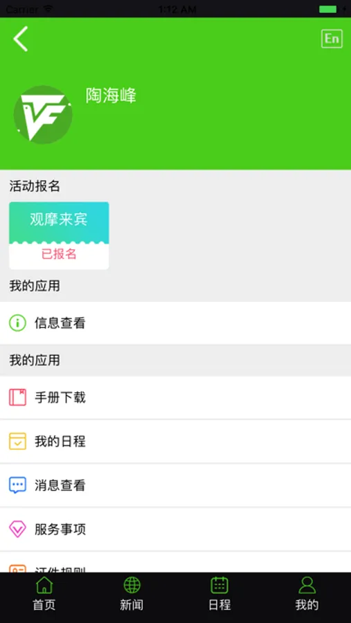 3. 来宾登录:显示来宾的信息,证件类型及使用规则,各类服务事项。