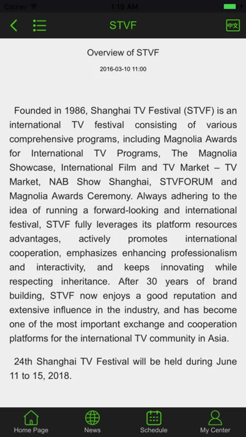 2. STVF日程:电视节期间的所有活动日程,活动场馆图片,支持场馆百度地图导航,登录后可收藏关注的日程。