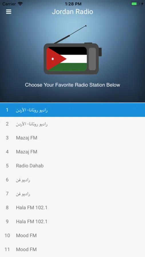 - Covers almost all the popular Arabic radio stations (راديو الاردن)!