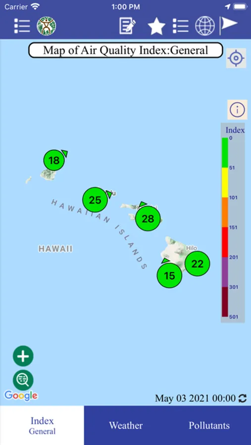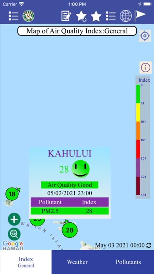 The data displayed in this application was acquired from air quality monitoring stations operated by Hawaii Department of Health.