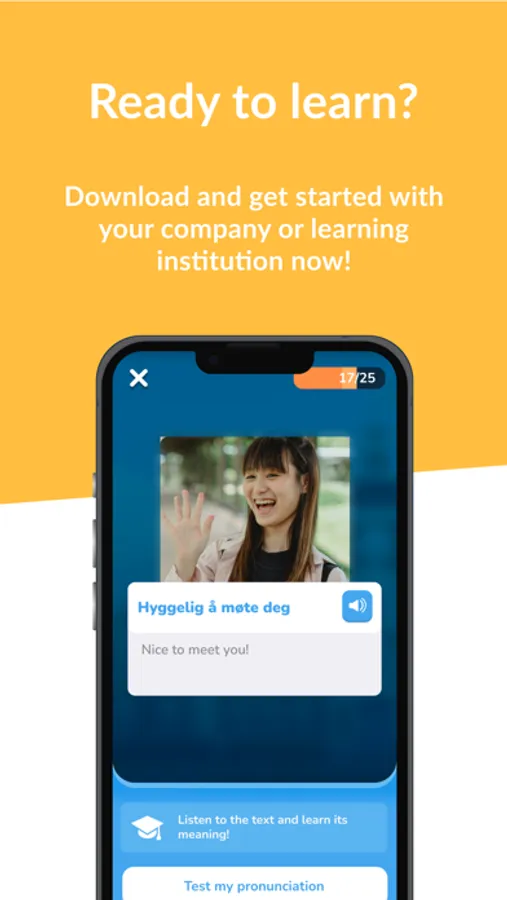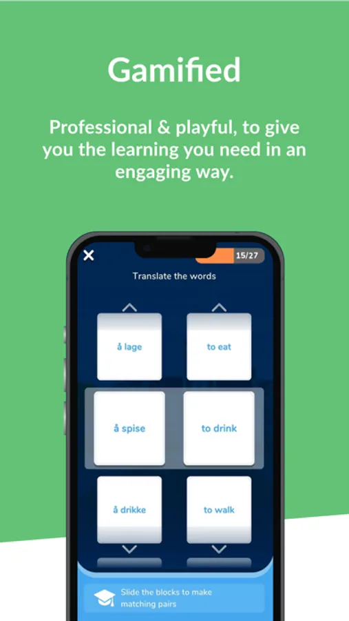 Learn English, Spanish, French, German, and Norwegian with more being added all the time.