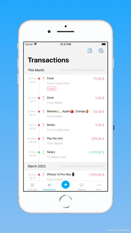 - Support budget, period support single, daily, weekly, biweekly, monthly, quarterly, yearly