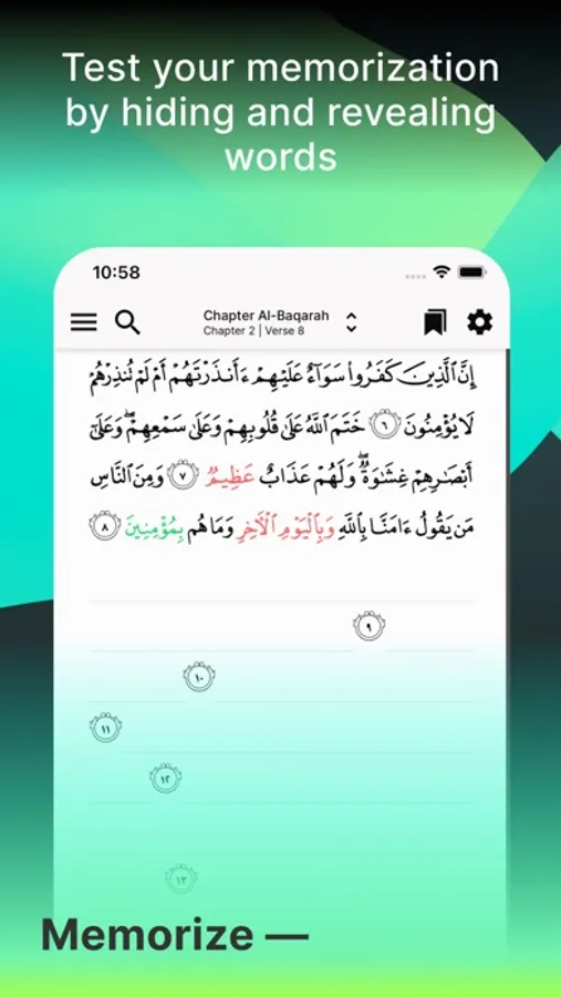Hide the script and recite; Tarteel will highlight verses and follow along with your recitation so you can check your memorization as you go. You’re one step closer to perfecting that verse!