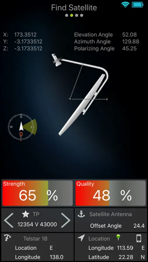 5. Automatic calculation of elevation, azimuth and polarization angle from mobile phone / tablet GPS Horizontal sensors and directional sensors