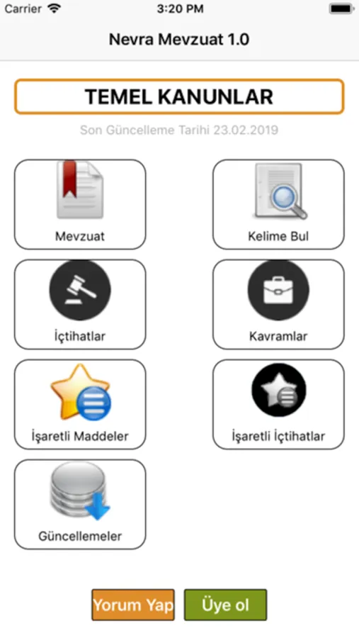 Uygulama içerisinde Türkiye Cumhuriyeti temel kanunları, bu kanunlar ile ilgili yönetmelikler maddeler halinde yer almaktadır. Maddeler ile ilgili içtihatlara ulaşabilir, İşaret koyarak sık kullandığınız maddelere hızlı erişebilirsiniz. Madde ile ilgili notlarınız yazabilirsiniz.