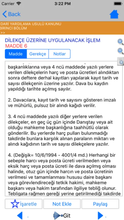1-Yıldız işaretine basarak Kanun maddesini işaretleyip İşaretlediklerim menüsünden hızlıca ulaşabilirsiniz.