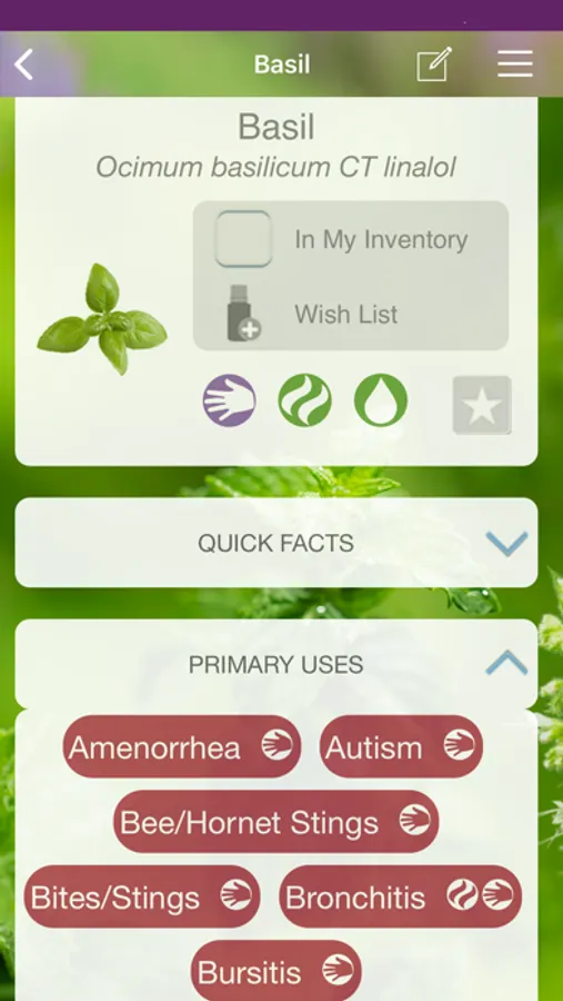 • Track your current essential oil inventory to see which recommended oils you already have for any condition.