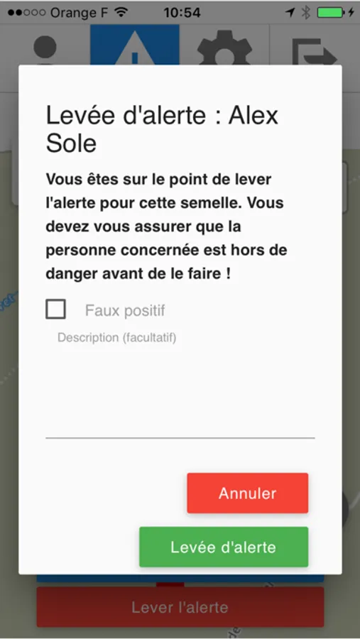 Elle émet, en temps réel, des notifications lorsque des alertes sont remontées par la semelle d'un travailleur et permet de visualiser différentes informations facilitant l'intervention.