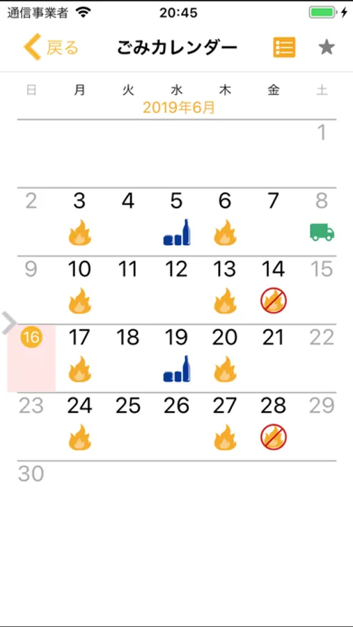 ごみの日の前日と当日にアラートでお知らせします。お知らせ時刻は自由に設定することができます。