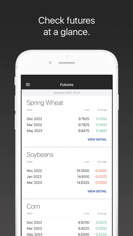 Futures: See Grains, Feed, Livestock, and Ethanol futures listed in order of your preference