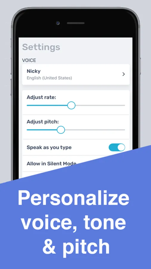 For most languages, the user is provided with a choice of different voices (male vs. female, etc.) In addition, the rate & pitch of each voice can be adjusted allowing the user to further personalize their voice.